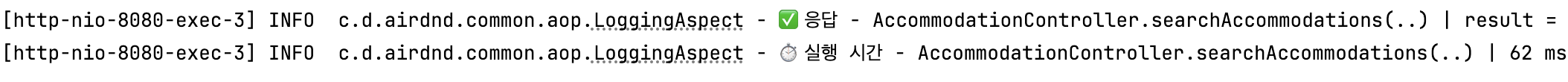 코드를 수정했으니, 다시 숙소 검색 API를 호출해 정상적으로 성능이 개선되었는지 확인해 봤습니다.